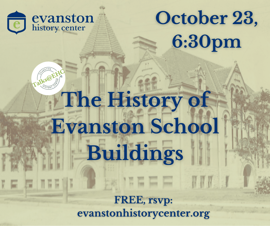 As District 65 grapples with allocating its resources to fit a new paradigm, join historian Kris Hartzell for a timely look at the history of elementary educational buildings in Evanston. From the first one room schoolhouse on Ridge Avenue, through innovative designs by architects Daniel Burnham and Dwight Perkins, learn how Evanston’s school buildings have always reflected growth and change in our community.