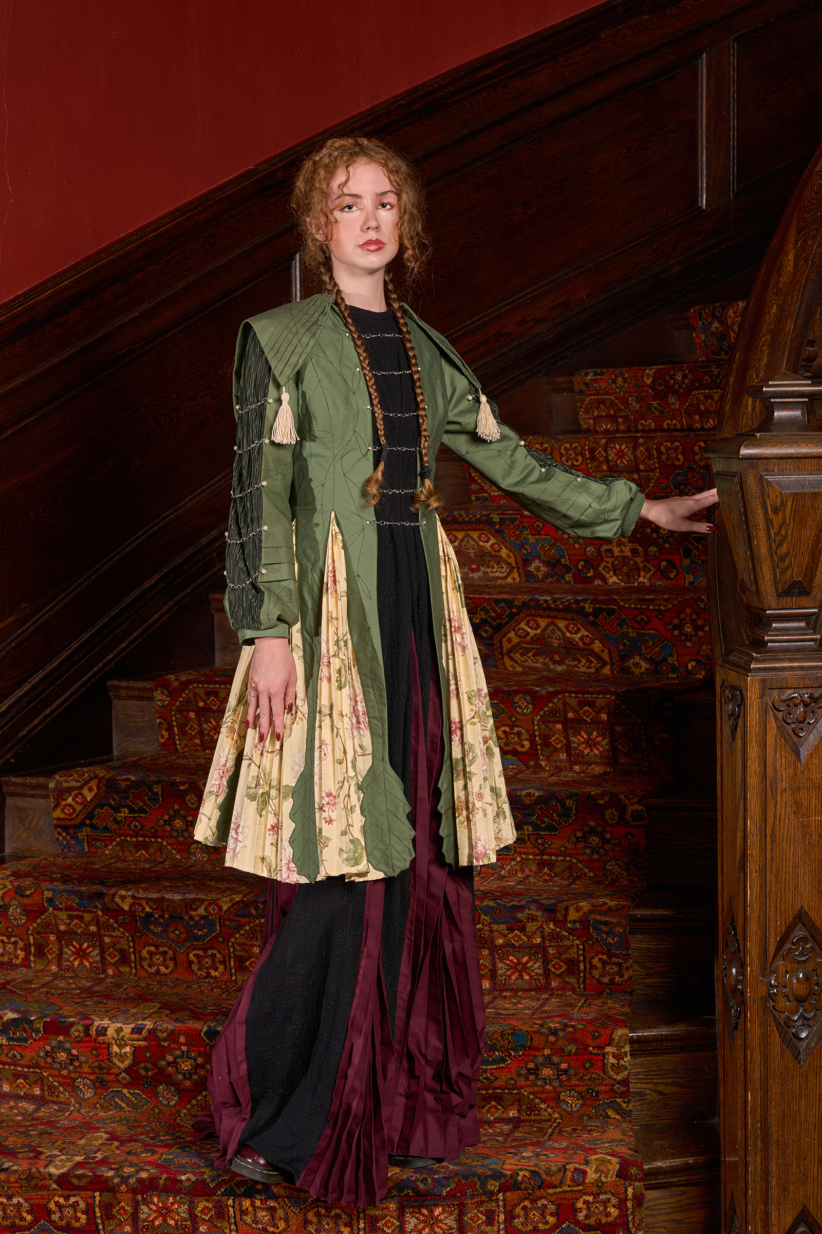 She enjoys bringing history to life through costume. Her work combines fiber art techniques like hand dyeing, embroidery, beading, and weaving.